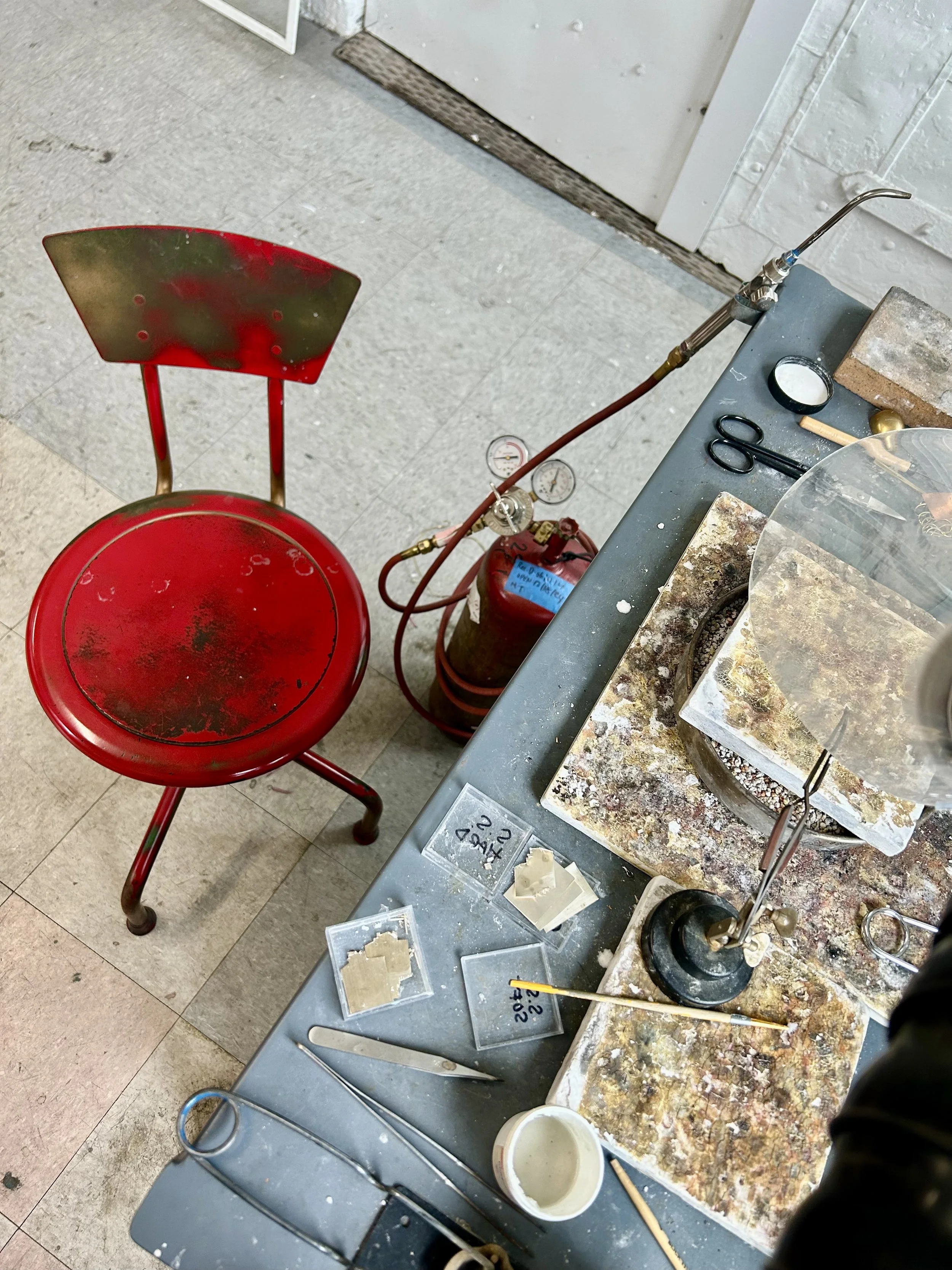 My pieces are made without the use of CAD, AI or 3D printing. All of the pieces featured on this site are designed and made by me in NYC, where I am part of the resident artist community at Brooklyn Metal Works.