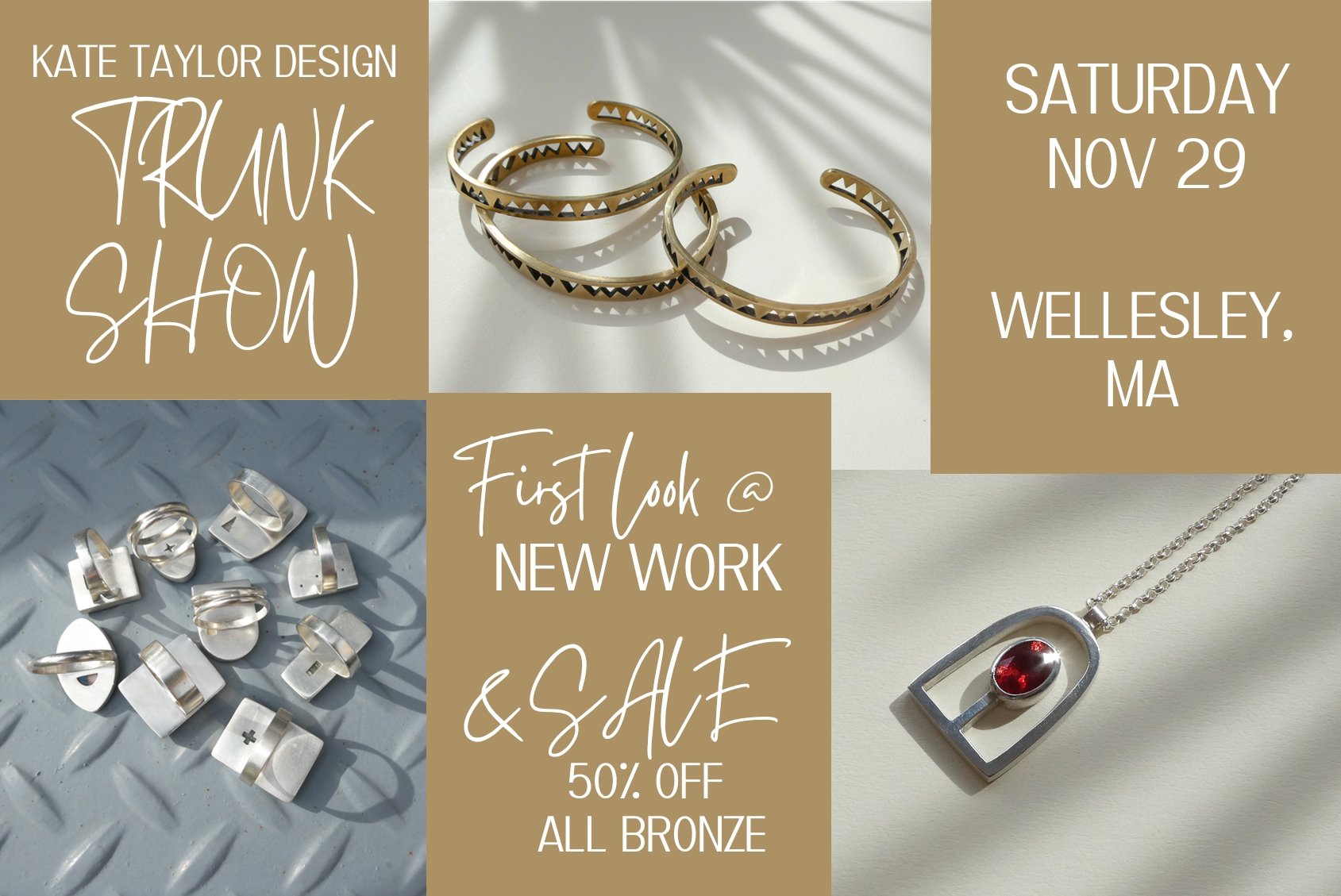 Friends in the Boston/metro west area, please join us for an intimate shopping experience. Try-ons and sipping mimosas encouraged! I will be phasing out bronze pieces so this is your change to grab something heavily discounted (& I get to see it find a good home!!).